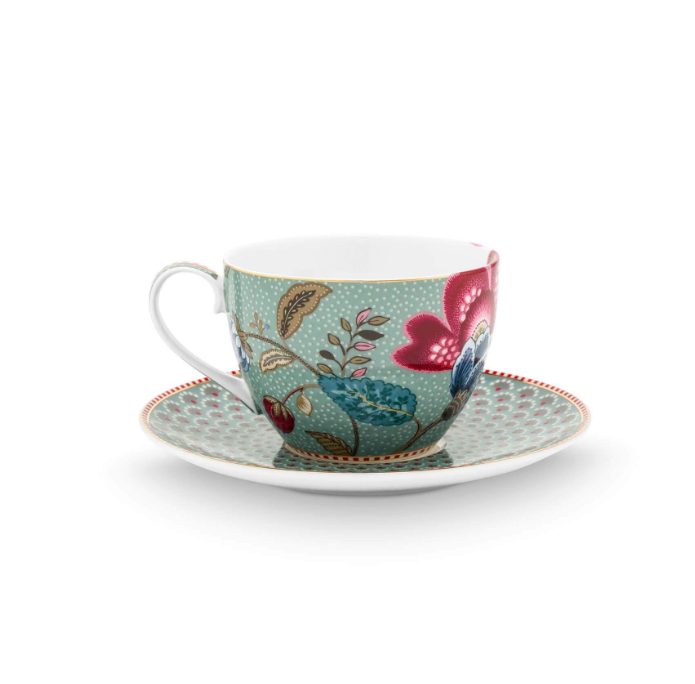 PIP Cappuccinotasse Blooming Tales Blau mit Untertasse