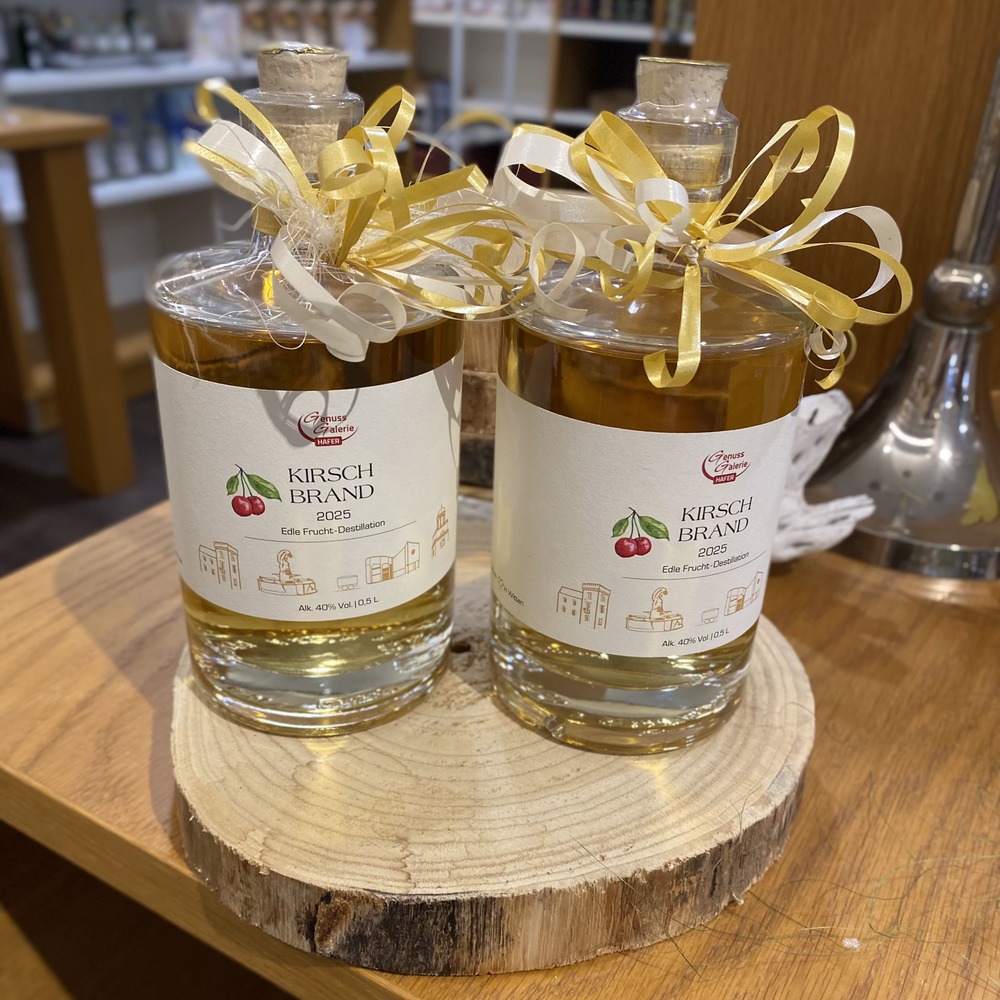 Dieser kostbare Obstbrand überzeugt mit einem reichen fruchtigen Bouquet von frischen Sauerkirschen und milder Mandel.
